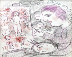 The colorful and vibrant tempera, gouache, pastel, crayon and watercolor painting by the famous Russian-French artist Marc Chagall (1887-1985), titled The Artist at His Easel, is artist signed lower right and measures 8 ½ inches by 11 ½ inches (less frame). The pre-sale estimate is $100,000-$200,000. Works by Chagall are highly prized by collectors.